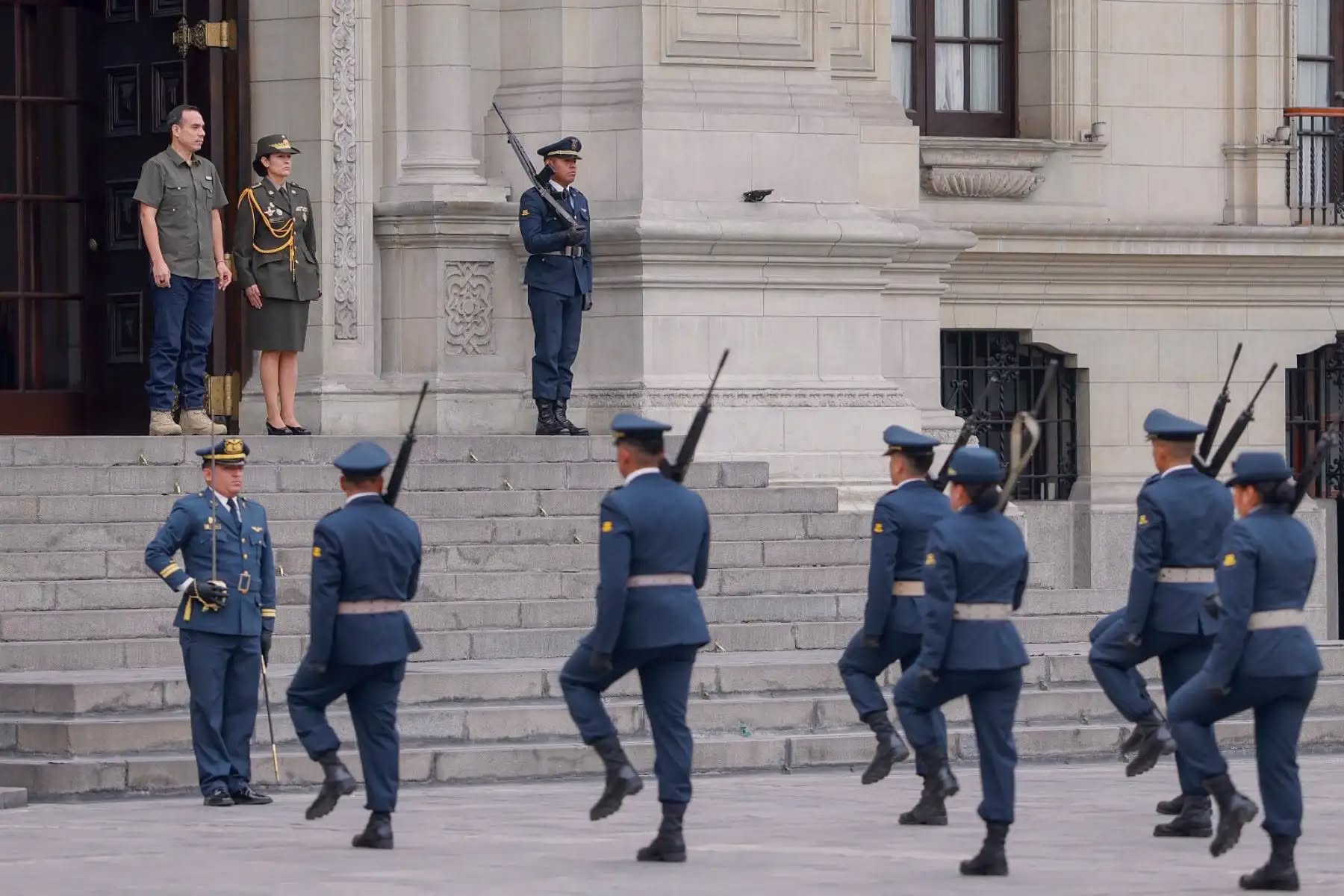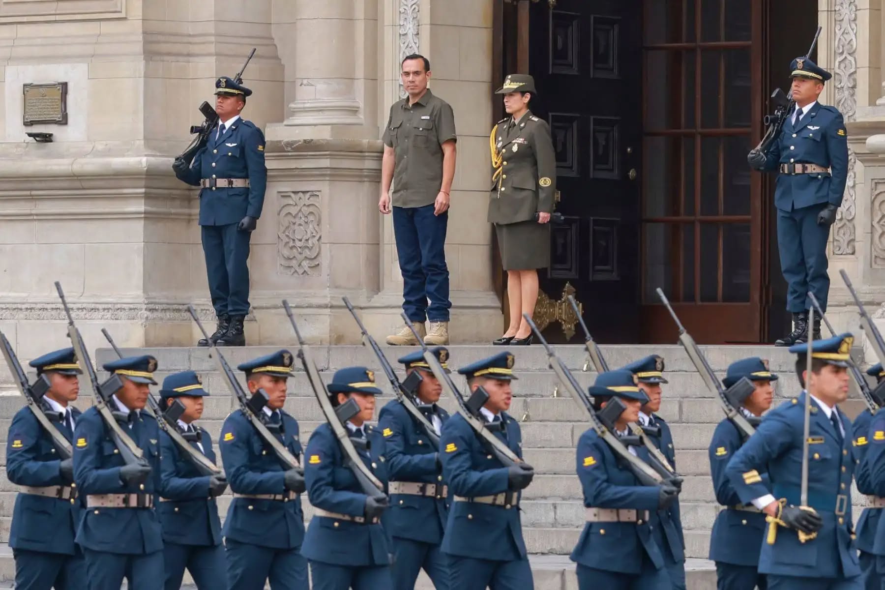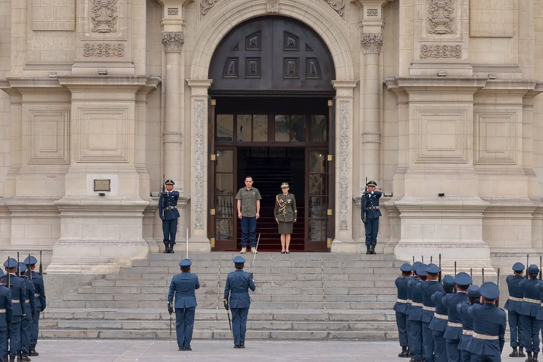 El presidente de la República del Perú, José Jerí Oré, presidió el tradicional relevo de cambio de guardia a cargo de los Alumnos de Segundo año, con la presentación de la compañía histórica de la Escuela de Suboficiales de la FAP, actividad que se realiza cada domingo en el Patio de Honor de Palacio de Gobierno.